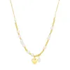 vandfast hjerte halskæde i forgyldt stål med blank overflade hvid syntetisk perle.
