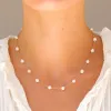 vandfast perle halskæde i forgyldt stål med blank overflade hvid syntetisk perle.