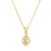 vandfast zirkon halskæde i forgyldt stål med blank overflade og 1 facetslebne hvid zirkoner.
