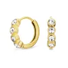 vandfaste creoler i forgyldt stål med blank overflade og 8 facetslebne hvide zirkoner.