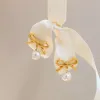 vandfaste sløjfe perle øreringe i forgyldt stål med blank overflade 2 hvide syntetiske perler.