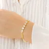 zirkon armbånd i forgyldt messing med blank overflade og 6 facetslebne hvid zirkoner.